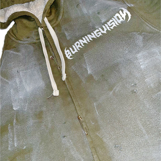 Burning Vision Distressed Safety Pinned Zip Up Hoodie